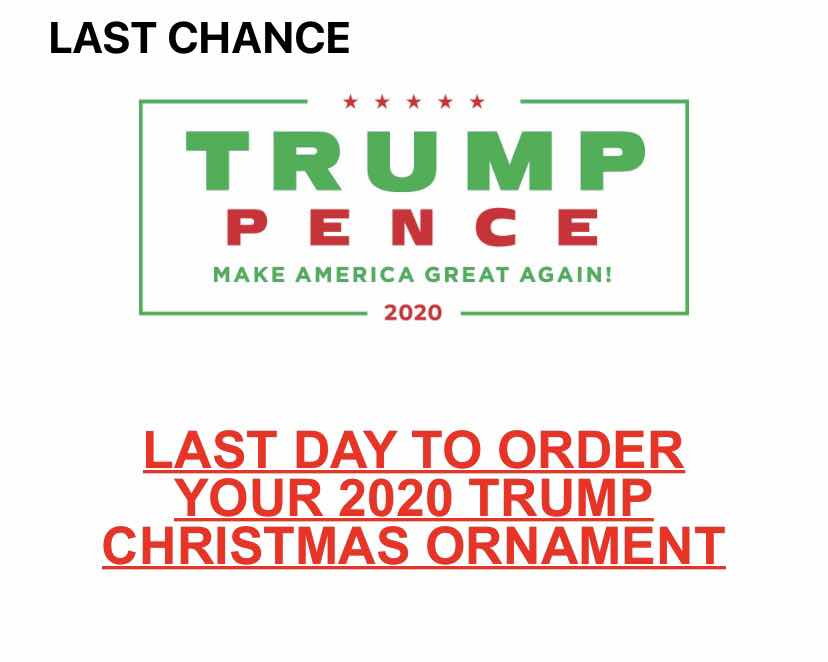 A reklám szerint ez az utolsó lehetőség Trump-karácsonyfadíszt venni (úgy legyen!).